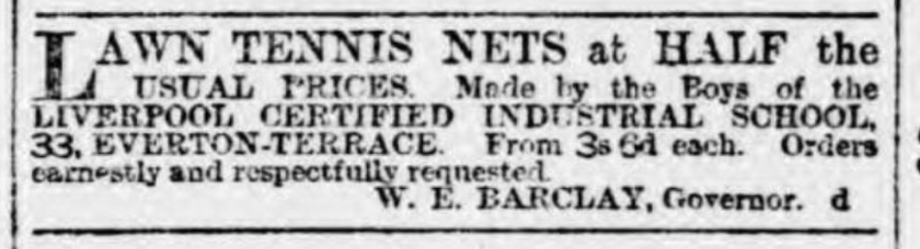 William Barclay, lawn tennis nets, Liverpool Certified Industrial School, 33 Everton Terrace, Governor