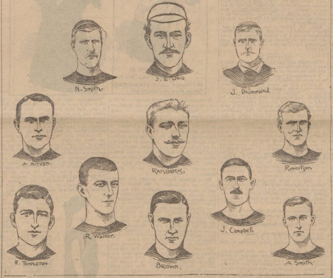 Let us hope Doig will acquit himself well on Saturday. Ned was one of the surprises of the team chosen. But he may again rise to the occasion, as he did on his last appearance in an International in Glasgow. A career such as Doig’s is something to be proud of. Thirty-four years of age, and a lative of Letham, in Forfarshire, he commenced playing football in 1883 for Arbroath, made a great name for himself, and, like many others, was induced to go South, first to Blackburn, and then to Sunderland, which latter place has indeed found a home from home. He was chosen to represent Scotland against Ireland in 1887 and 1889, and his ambition was realised when in 1896 he held the fort against England at Celtic Park, Glasgow, and helped his side so much towards their victory of two goals to one that he was “chaired” off the field. It is said that on that occasion a hero worshipper begged for a lock of the warrior’s hair. For purely natural reasons, however, Doig had to decline – regretfully. IN 1897 he was again chosen in the big match of the year, but his club were in such difficulties – fighting for their very existence – that he preferred to assist them. He had the dual satisfaction of helping Sunderland to win and of hearing the same night that Scotland had gained the day without him. In 1899-1900 he should again have been between the Scottish posts at Glasgow, but Sunderland this time had a chance of the League championship, and he went to Sheffield instead. Alas! This time Scotland and Sunderland both hit the dust.