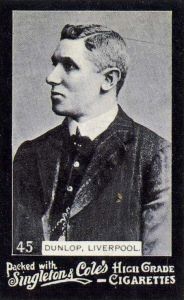In the season of 1894-5 he came to Liverpool, and assisted them throughout their progress in the Second Division. A year was spent in the First Division following this, but Liverpool were once doomed to the Second League, for they lost the memorable test match, with Bury at Ewood, by a goal to nil. Again did Dunlop ably aid his club through another eight months of Second Division warfare, but he had the misfortune to suffer from a poisoned ankle in the later stages of the campaign, and this necessitated a change in the rear division, which thereby composed of Goldie and Wilkie. The pair combined so effectively that Dunlop was kept in the background for some time, but at length, Wilkie’s form became unsatisfactory and the left full back once more asserted his position in the premier team. He has held this post by dint of downright determination to the present time, and he alone remains, as the modern representative of the early of the Liverpool club.