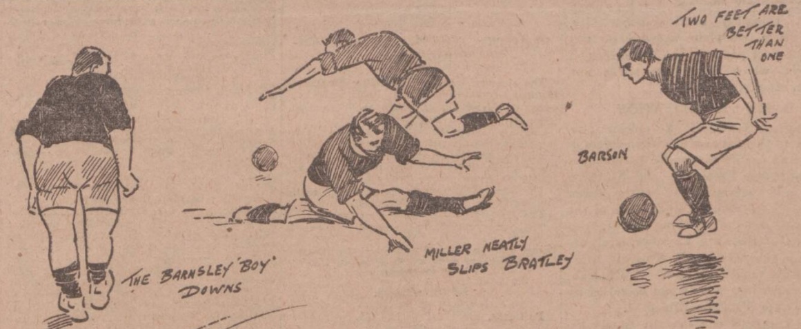 Never have I seen two such strikingly dissimilar exhibitions of football as those given by Barnsley on the last two Saturdays. Against Blackpool they could do little that was right and proper; against Liverpool they did little that was wrong, and the Anfielders must account themselves a fortunate side to be able to fight the battle over again, and as the final blow has not been struck these comments need only be brief.