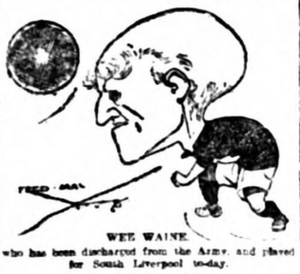 Wee Robert Waine who has been discharged from the Army and played for South Liverpool to-day.