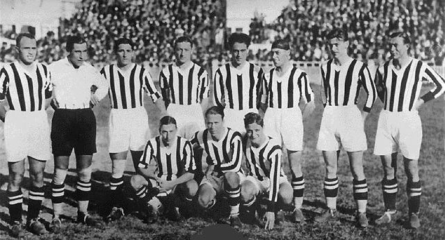 This is a photograph of a team abroad, and Dr, Hess, well remembered in this city, has sent it along to Mr. Arthur E. Morton, and at the same time has spoken of the Scottish tour of Italy. Dr. Hess says: “I always found you Britons taking too little interest in what happens abroad, and hoped that one day you would wake up from your splendid isolation. This has happened. And what a difference from the time Mr Bee was teasing me in his paper because I told him that at that time (1906 we preferred not to play during the winter season. At that time we had nine clubs. Most of the players of this team, Juventus, are internationals. A visit of this team to England would arouse much interest.” Dr. Hess has held every position on the Italian Football Association.