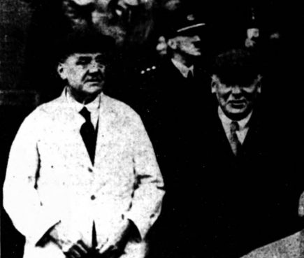 Liverpool’s trainer Charles Hewitt (left) with Sunderland trainer and former Liverpool stalwart Billy Dunlop at “the pen”. At the back Chief Superintendent W. Hughes.