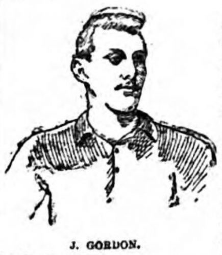 “Jack Gordon was lean and sinewy. The only superfluous thing he carried was a moustache, which tended to soften a sallow face that had not the brightness of Jimmy Ross or the fair and pleasant manliness of Sam Thompson. His face was rather forbidding, and was apt to suggest that he was the kind of player who would not stand any nonsense from an opponent. Nor would he. And he was a hard proposition of bone and muscle. Hi legs were long, and so were his arms. When he was dashing along the touchline with the ball at his foot he seemed all legs, with his high-stepping action and his arms whirling about like windmill sails. With such a style, considerable speed, fine command of the ball, and brilliant centres and screws from the touchlines, while on the move, he was difficult to find and tackle and a source of infinite worry to his foes. More practical than fanciful, more direct than sensational, he was the type of forward who never wasted time by the unnecessary. His discretion in delivering centres and his cuteness in re-pass to his mates were marked features of his style.”