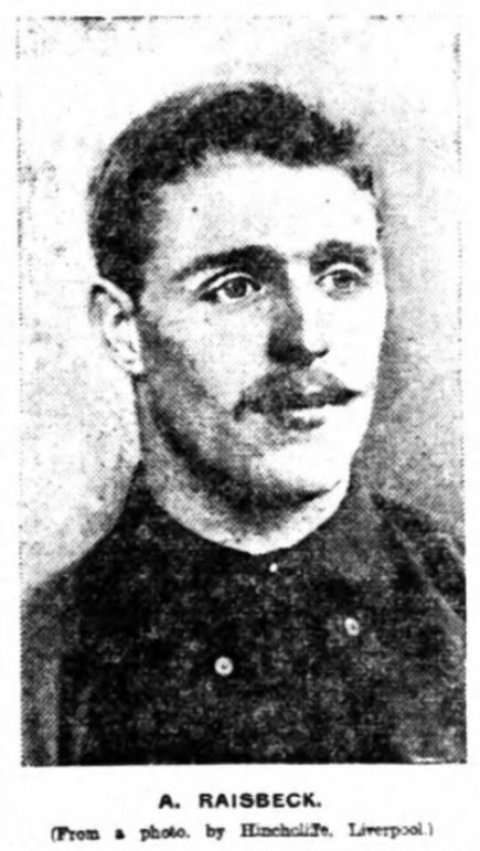 “The picture of an athlete, a player’s remarkable abilities and a man of high instincts, Alexander Raisbeck, the captain of Liverpool, arrests attention as soon as he walks on to the arena. He is a footballer with a personality, even in the promiscuous punting about prior to the commencement of a match, and his figure is calculated to prompt the question: “Who is that very fair man?” from the spectator who is but a casual visitor to the grounds of our leading clubs. His wealth of flaxen hair and his pink complexion, for Raisbeck is always “in the pink” of condition, endow him with prominence if his fine frame did not command respect. Raisbeck is like all great athletes – he looks taller and more powerful in the garb of sport than he does in the ordinary attire of everyday life. This famous son of “Caledonia stern and wild” stands 5ft. 9½in., and weighs 12st. 12lb., so that he is calculated to give an opponent pause if perchance they happen to meet. To these qualities he adds the inestimable gift of youth, for he is only 22 next Boxing Day, and, like many of his race, he has a headpiece that would steer him even through more intricate mazes and meshes than can be found on a football enclosure, kaleidoscopic though these changes be. The captain of Liverpool is undoubtedly among the greatest players who ever crossed the border.”