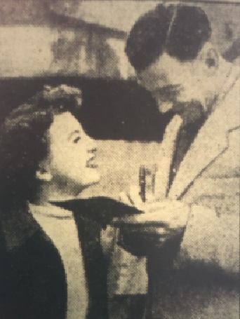 Liverpool’s Welsh international goalkeeper, Cyril Sidlow, gives his autograph to one of Liverpool’s most ardent supporters, ‘teenager Margaret Wilkie, an art student.