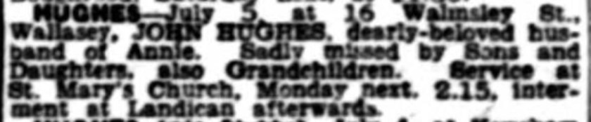 Passed away: July 5, 1950: Wallasey (Lancashire), England.