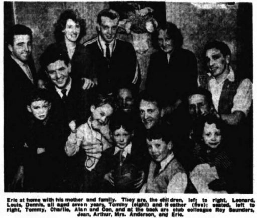 Eric, who has lived in Manchester all his life, has no sterner critics than his own brothers, while in addition, as an uncle to four lively youngsters in Tommy (8), Lewis, Leonard and Dennis (all aged seven), he now finds himself even more heavily outnumbered. “Not that I ever get anything, but constructive criticism,” said Eric.
