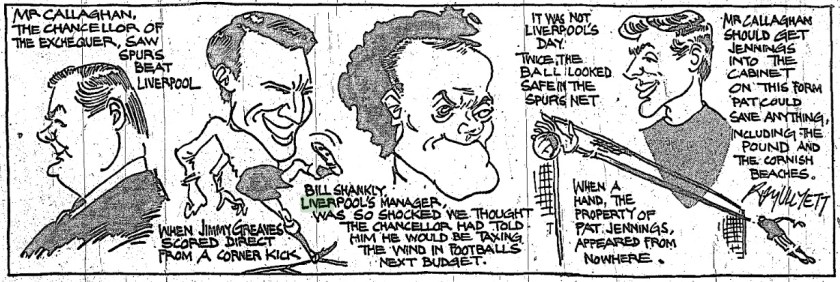 ‘Spurs: Pat Jennings, Joe Kinnear, Cyril Knowles, Alan Mullery, Mike England, Dave MacKay, Jimmy Robertson, Jimmy Greaves, Alan Gilzean, Terry Venables, Frank Saul.