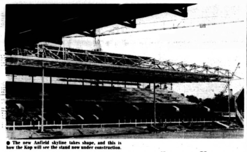 The first team had played 26 home games compared with 27 the previous season. The aggregate dropped from 1,264,000 to 1,149,000 – the average from 46,814 to 44,182. But takings from away games were up, as Liverpool had played several more away last season the previous year. The balance sheet showed the club to be sound financially, and they had committed themselves to signing contracts of £478,321 for work on the new stand.