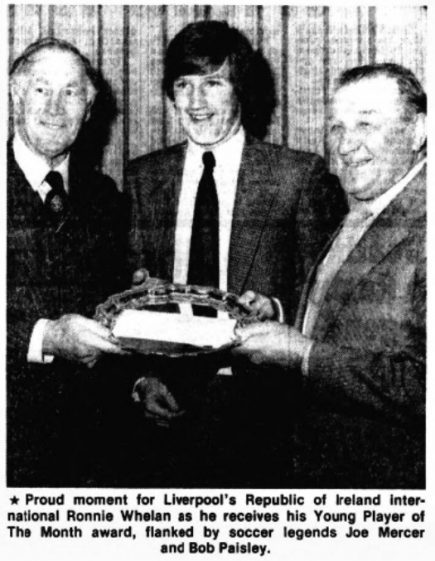Evertonians who admired Ronnie Whelan’s steady progress across the park, may be interested to know that the Irishman who was yesterday presented with the Robinson’s Young Player of the Month award, was once an unsuccessful trialist at Goodison.