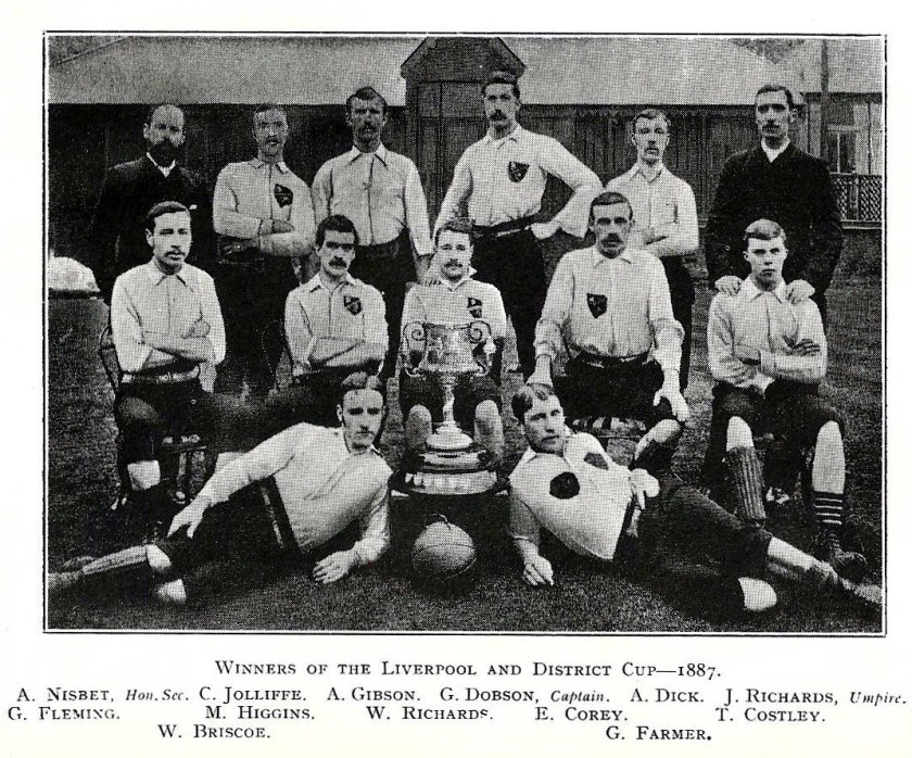 It is the summer of 1887 and the Everton team pose, at the Sandon, with the trophy they had just won after beating Oakfield Rovers by five goals to nothing. Two of these goals had been scored by a man, sitting left of the centre row, who has recently moved to Merseyside from Scotland. His name is George Spink Fleming and he is destined to etch his name in to the record books of Everton Football Club.