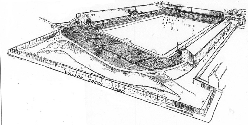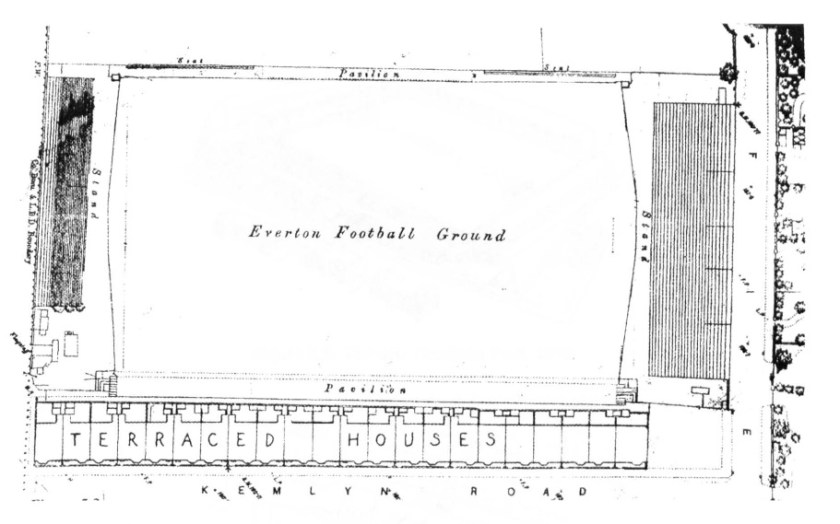 There is a bird-eye sketch from a map of the Everton ground in 1891. Hold your horses – this is what it looked like: