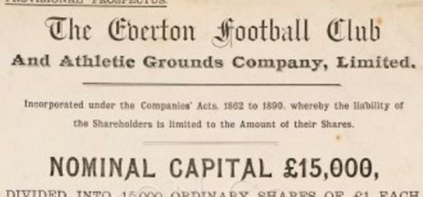 January 30, 1892 Considerable surprise was expressed by the members of the Everton Football Club upon proof being obtained that a company had actually been