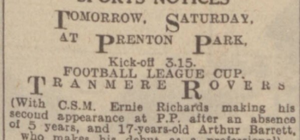 March 17, 1945 Match: Football League, Northern Section, Regional 2, at Prenton Park, kick-off: 15:15. Tranmere Rovers – Liverpool 1-2 (0-1). Attendance: 7,000. Referee: Mr.