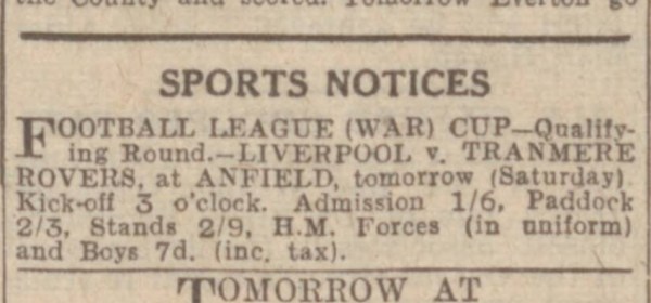 Tranmere Rovers v Liverpool 1-2 (League match: March 17, 1945)