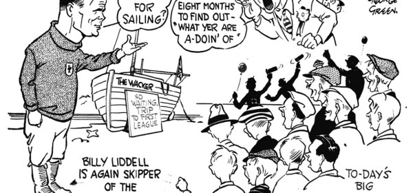 August 29, 1946 Len Carney, fair-haired schoolmaster crashes into big-time football when he plays for Liverpool against Sheffield United at Bramall Lane. He played a