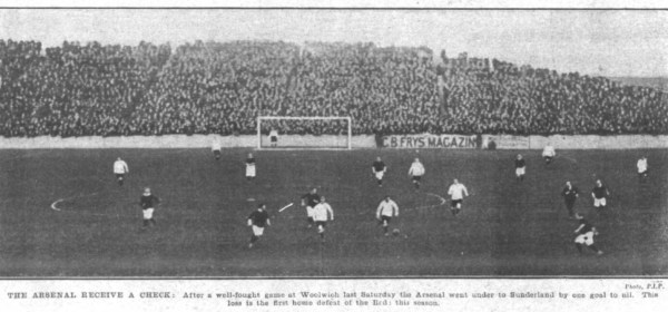 December 1, 1906 Match: Football League, First Division at Manor Ground (Plumstead). Woolwich Arsenal – Sunderland 0-1 (0-0). Attendance: 18,500. Referee: Mr. J.T. Howcroft (Bolton);