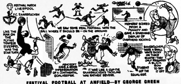 May 9, 1951 Match: Friendly, Festival of Britain, at Anfield, kick-off: 18:30. Liverpool – Saarbrucken 1-1 (0-1). Liverpool (2-3-5): Charles Ashcroft, Ray Lambert, Eddie Spicer,