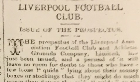 June 27, 1892 The prospectus of the Liverpool Association Football Club and Athletic Grounds Company, Limited has just been issued, and a perusal of it