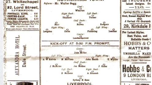 Liverpool v Rotherham Town 7-1 (Friendly: September 1, 1892)