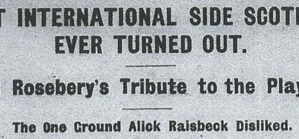 April 24, 1915 Best International side Scotland ever turned out. Lord Rosebery’s tribute to the players. The one ground Alick Raisbeck disliked. I have already