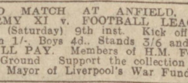 March 8, 1940 Merseyside stages its second big wartime representative match tomorrow, when, at Liverpool’s Anfield home, the British Army, following their triumph over the