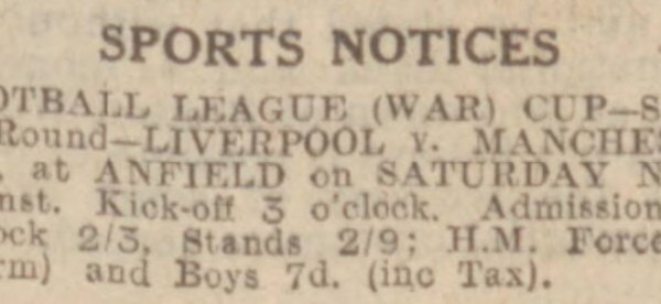 April 5, 1945 Liverpool are faced with serious team problems for their North Cup second round tie – first “leg” – with Manchester City at